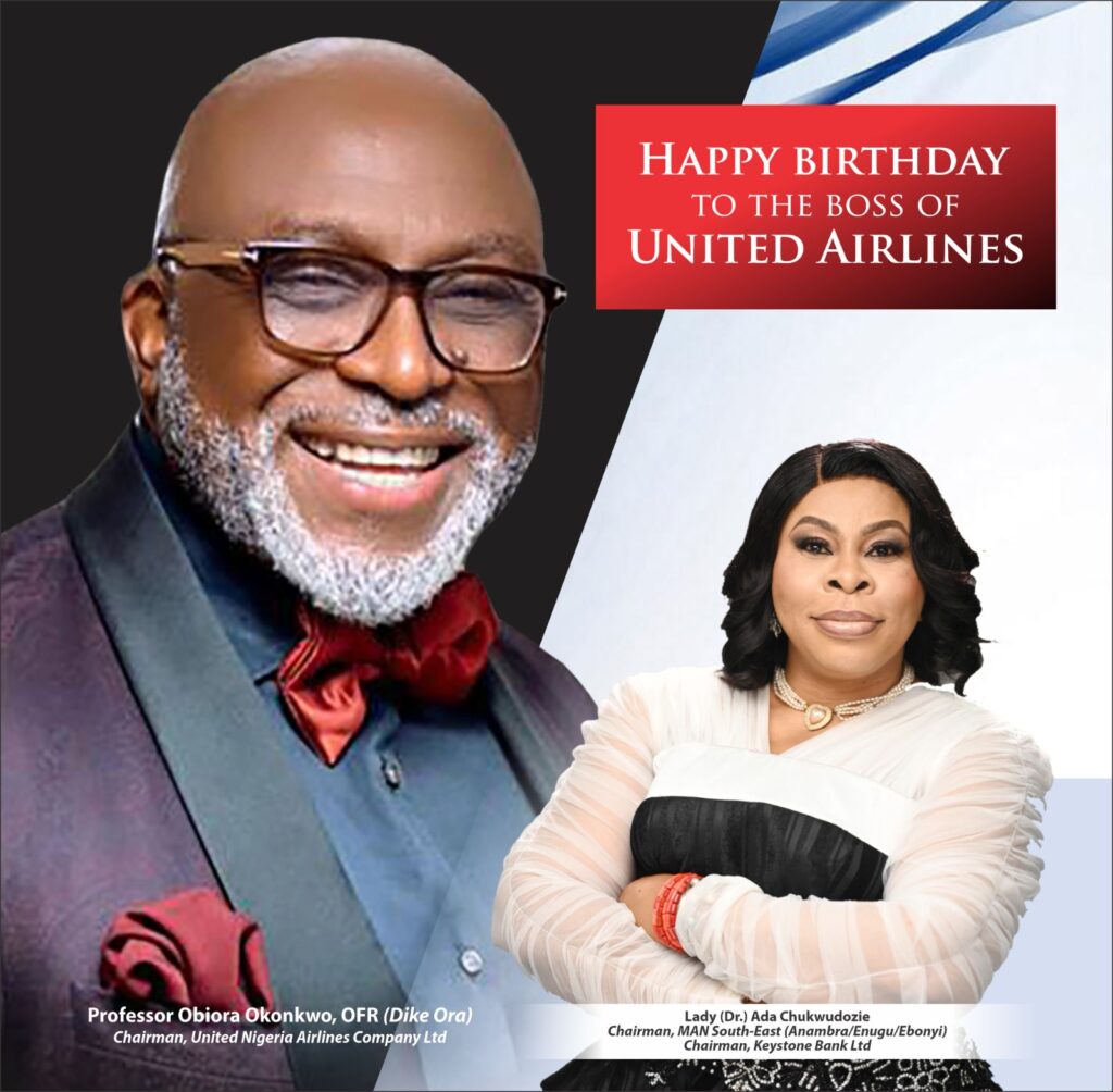 The Chairman of Keystone Bank Plc who doubled as the Chairman of Manufacturers Association of Nigeria (MAN) South East Anambra Enugu Ebonyi States, , Dr Ada Chukwudiozie gratefully hails Prof Obiora Okonkwo OFR, on his 60th Birthday.